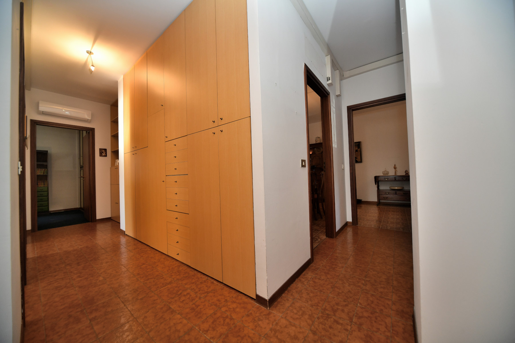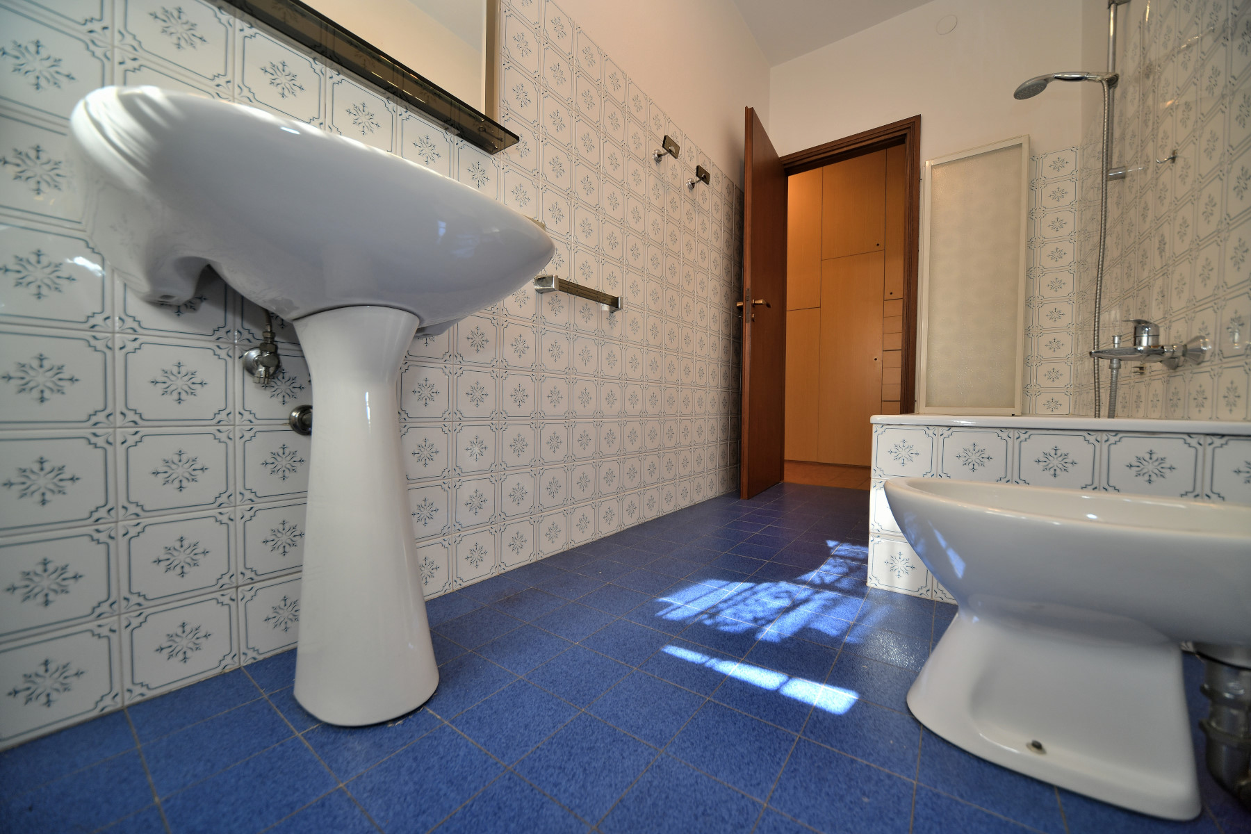 La zona notte offre tre camere da letto: due matrimoniali e una singola. Il comodo disimpegno è ideale per l’installazione di capienti armadiature su misura. Doppi servizi a disposizione: un bagno padronale molto grande e uno più piccolo.